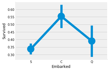 >> 여성은 70%이상 , 남성은 20% 이하의 생존율을 가진다. >> 여성을 우선 구조했음을 짐작할 수 있다.