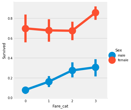 data.loc[(data['Fare'] > 31) & (data['Fare'] <= 513), 'Fare_cat'] = 3