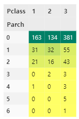 pd.crosstab(data.Parch, data.Pclass).style.background_gradient(cmap = 'summer_r')