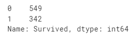 - value_counts() 도수분포표 확인 가능 >> R에서 table 같은 역할 table(data$Survived)