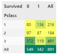 pd.crosstab(data.Pclass, data.Survived, margins = True).style.background_gradient(cmap = 'summer_r')