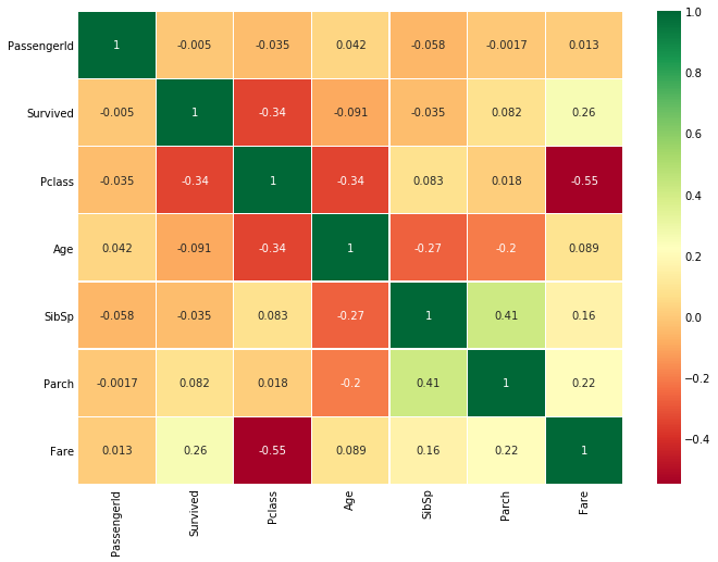 sns.heatmap(data.corr(), annot = True, cmap = 'RdYlGn', linewidths = 0.2)
