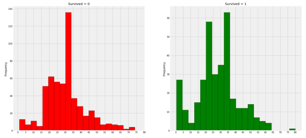 >> 앞으로 Survived 값이 0,1에 따라 다른 변수들의 분포가 어떻게 분포되어 있는지 확인할 것이다.