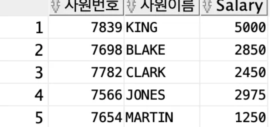 SELECT empno as 사원번호, ename as 사원이름, sal as "Salary"
