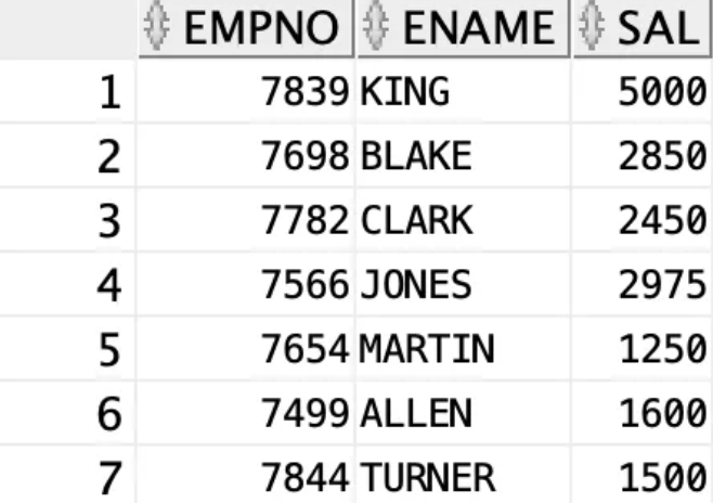 SELECT empno, ename, sal