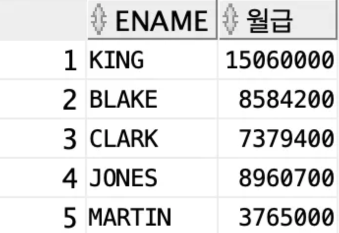 SELECT ename, sal *(12 + 3000) as 월급