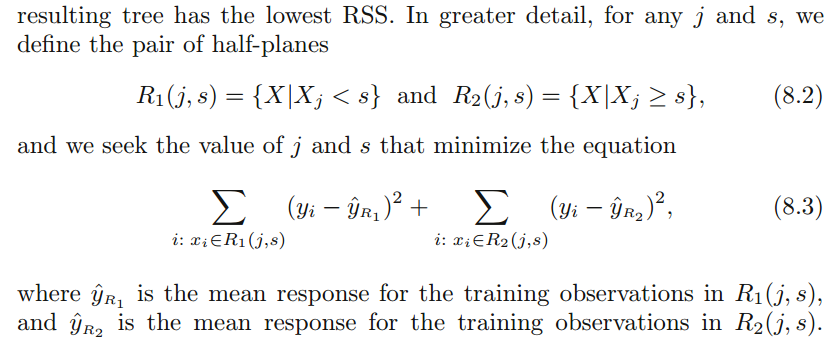2. { X | Xj < s } and { X | Xj > s }에서 RSS를 가장 최소화시키는 s를 찾는다.