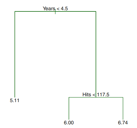 Years > 4.5로 분류된 데이터들은 다시 한번 Hits < 117.5를 기준으로 분류되었습니다.