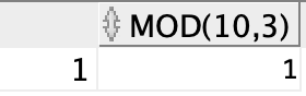 SELECT MOD(10,3)